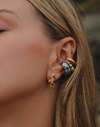 Nuestros Aretes Caballito de Mar decorados con cristales de vidrio, combinan brillo y sutileza. Perfectos para darle vida a tu estilo con un guiño al océano. Encuéntralos en baño en oro de 24k y plata.