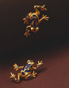 Aretes inspirados en la rana venenosa del Pacífico colombiano, un símbolo de biodiversidad y color en la selva húmeda. Su diseño detallado con resina azul los convierte en una pieza llamativa y llena de carácter.