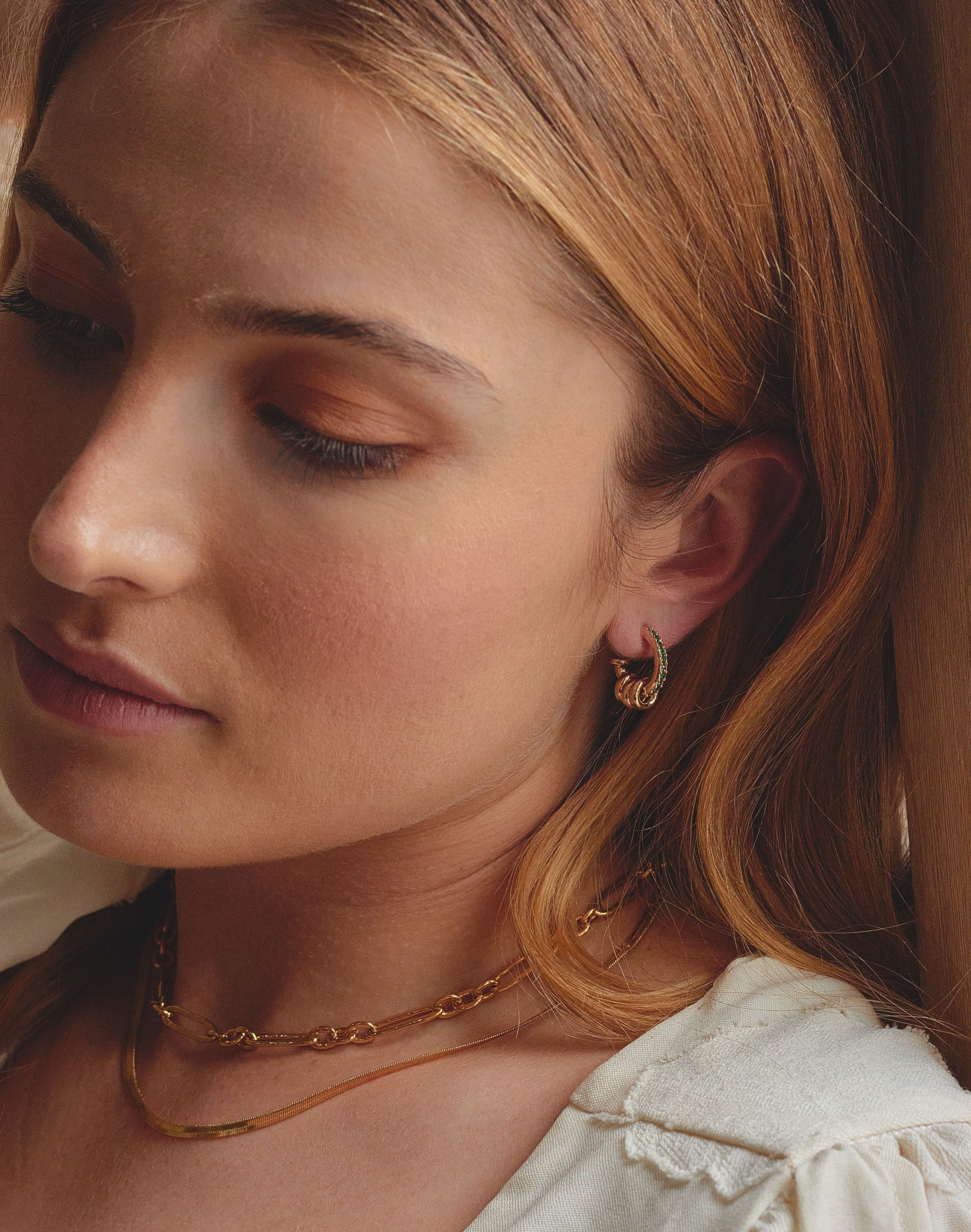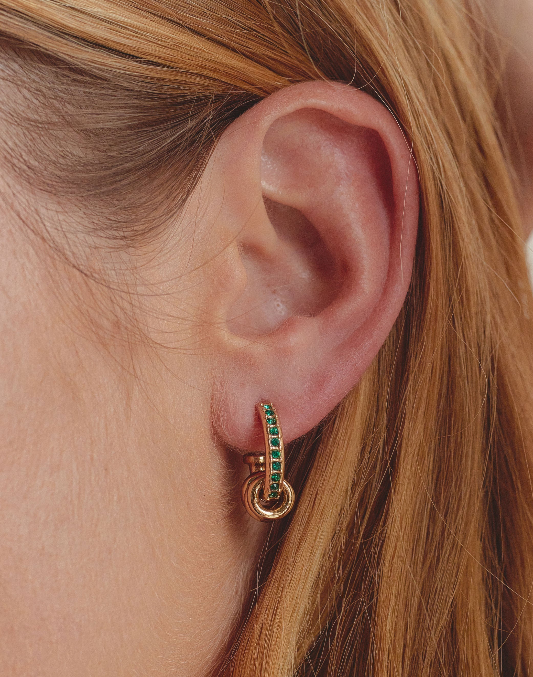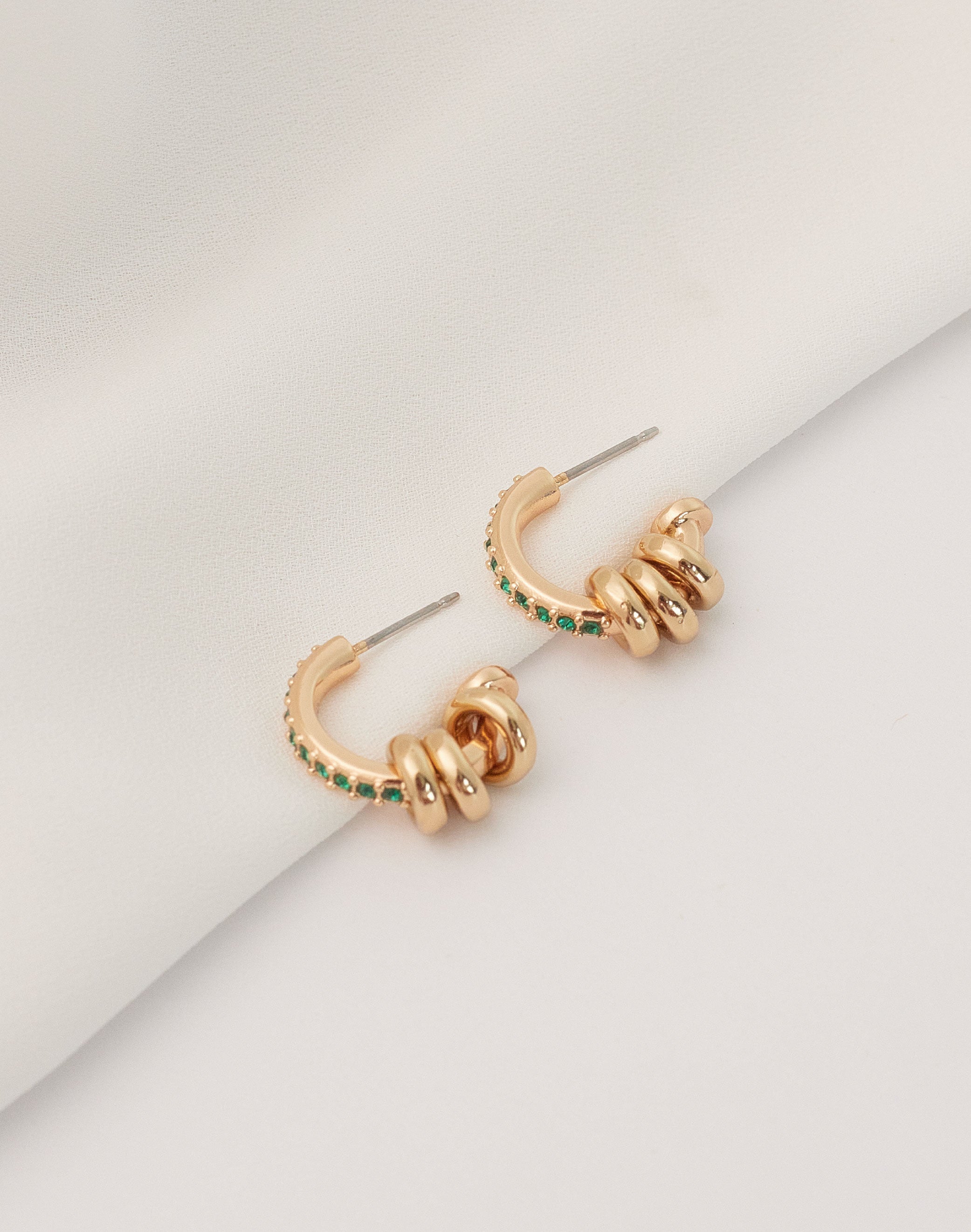 Candongas con detalles en cristal, ideales para looks frescos y juveniles. Especificaciones: Baño en Oro 24k Medidas: Candonga alto 15 mm, ancho 3 mm; dona diámetro interno 3.5 mm Peso...
