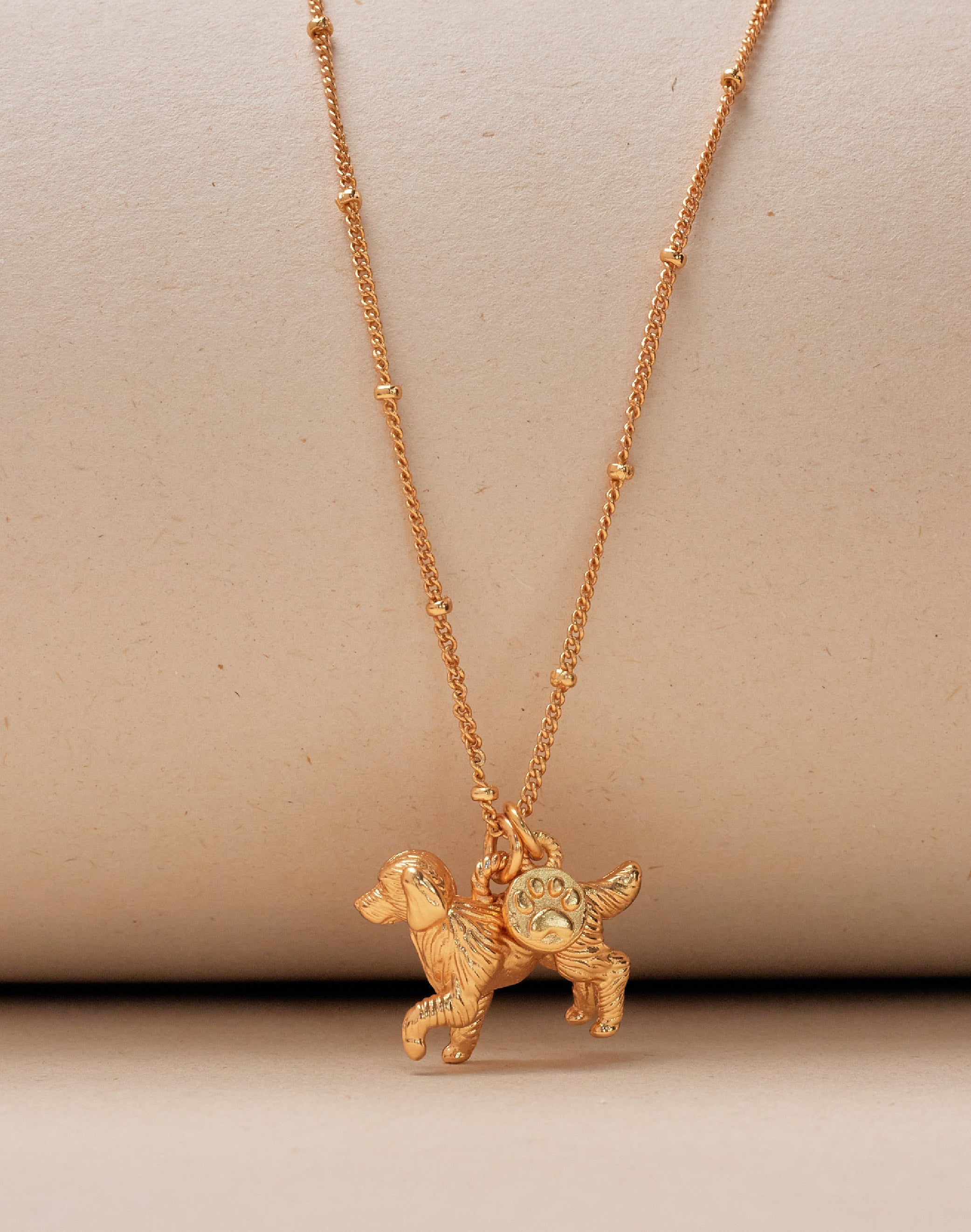 Este collar con dije de perro Golden Retriever es el detalle perfecto para los amantes de esta raza tan alegre y cariñosa. Ideal para quienes quieren llevar un pedacito de su mejor amigo siempre consigo.