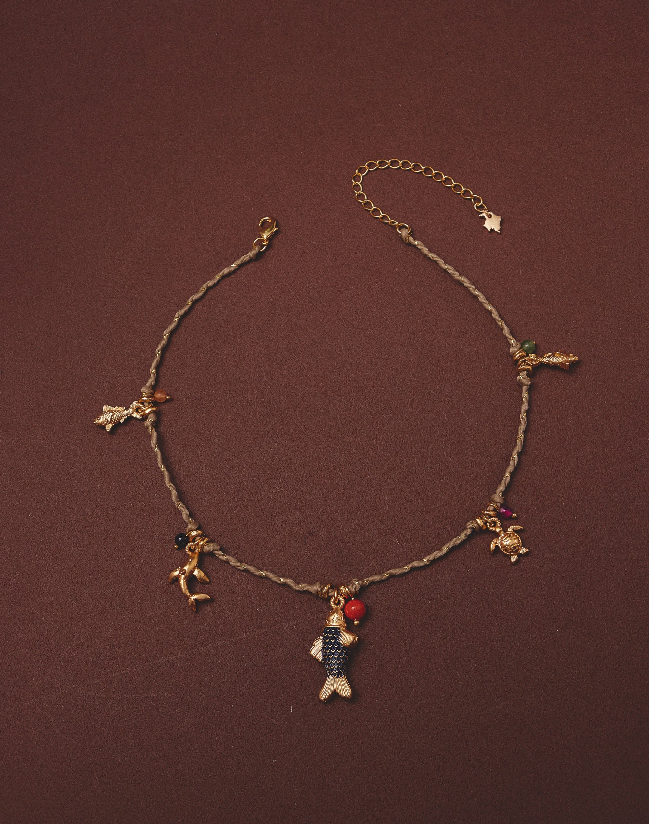 - Dijes: Pez (17 mm), tiburón ballena (21 mm), pez con pátina azul (33 mm), tortuga (16 mm), pez (17 mm)